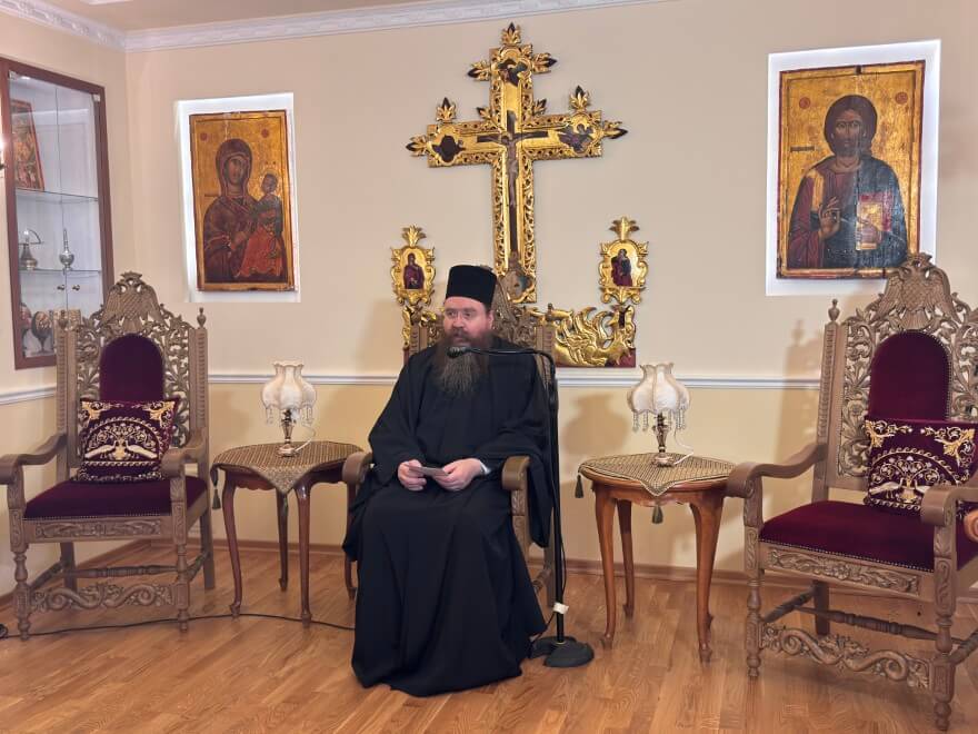 Το πρόγραμμα ξεκίνησε με Δέηση στο Καθολικό για την αρχή του κατηχητικού έτους. Ακολούθησε η ομιλία του Καθηγουμένου π. Νικάνορος με θέμα: «Η ζήλια στον γάμο». Ο ομιλητής έκλεισε τον λόγο του ενθαρρυντικά λέγοντας: «Με τον αγώνα μας και το φως του Χριστού η ζήλια μας μπορεί να μεταμορφωθεί σε πνευματική ωρίμανση και εμπιστοσύνη».