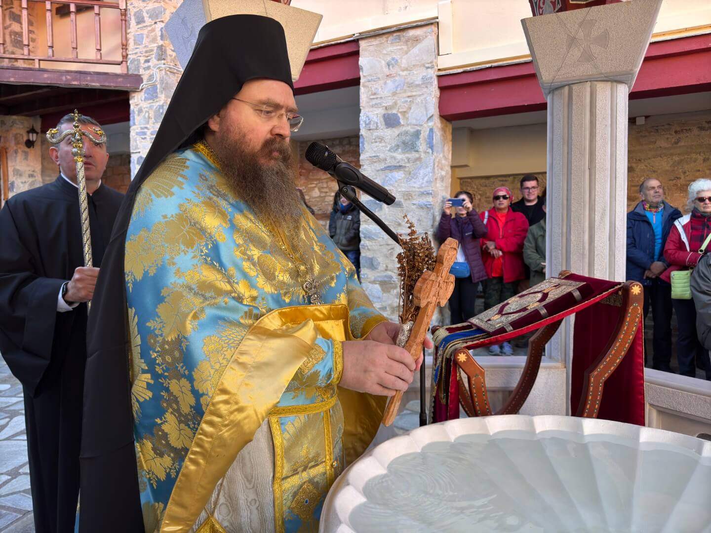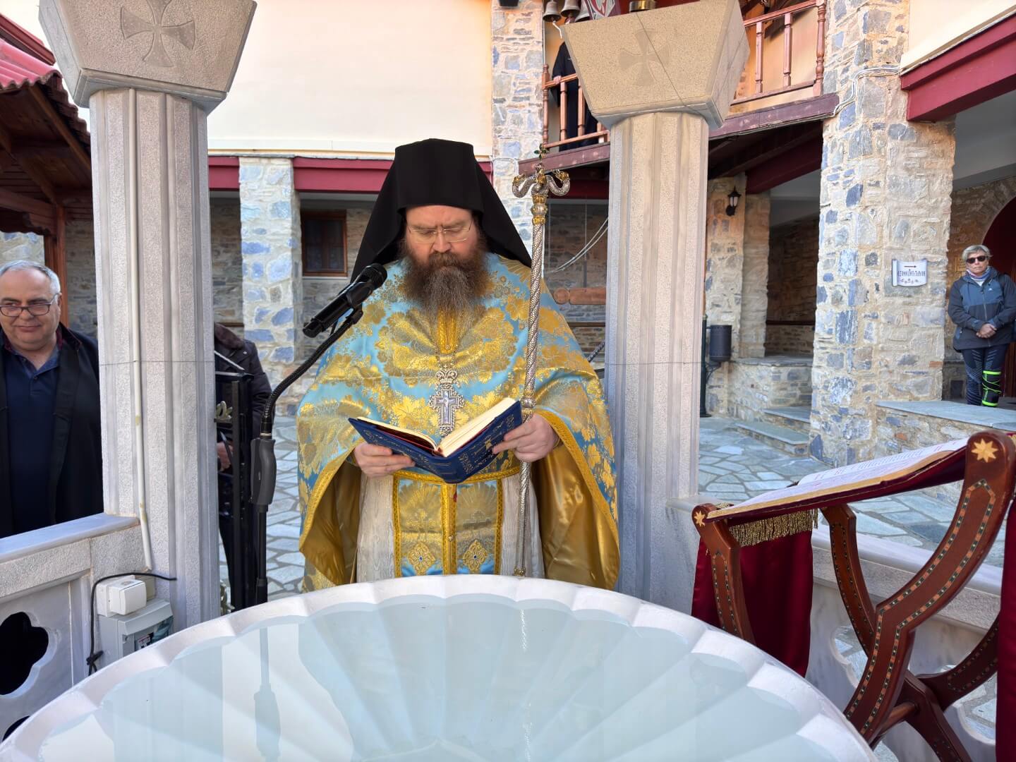 Η μεγάλη εορτή των Θεοφανίων εορτάστηκε με λαμπρότητα για ακόμα μια φορά στην Ιερά Μονή Αγίας Τριάδος Σπαρμού Ολύμπου. Το πρωί της Δευτέρας 6/1/2025, μετά τη Θεία Λειτουργία, τελέσθηκε στη φιάλη της Μονής ο αγιασμός των υδάτων.