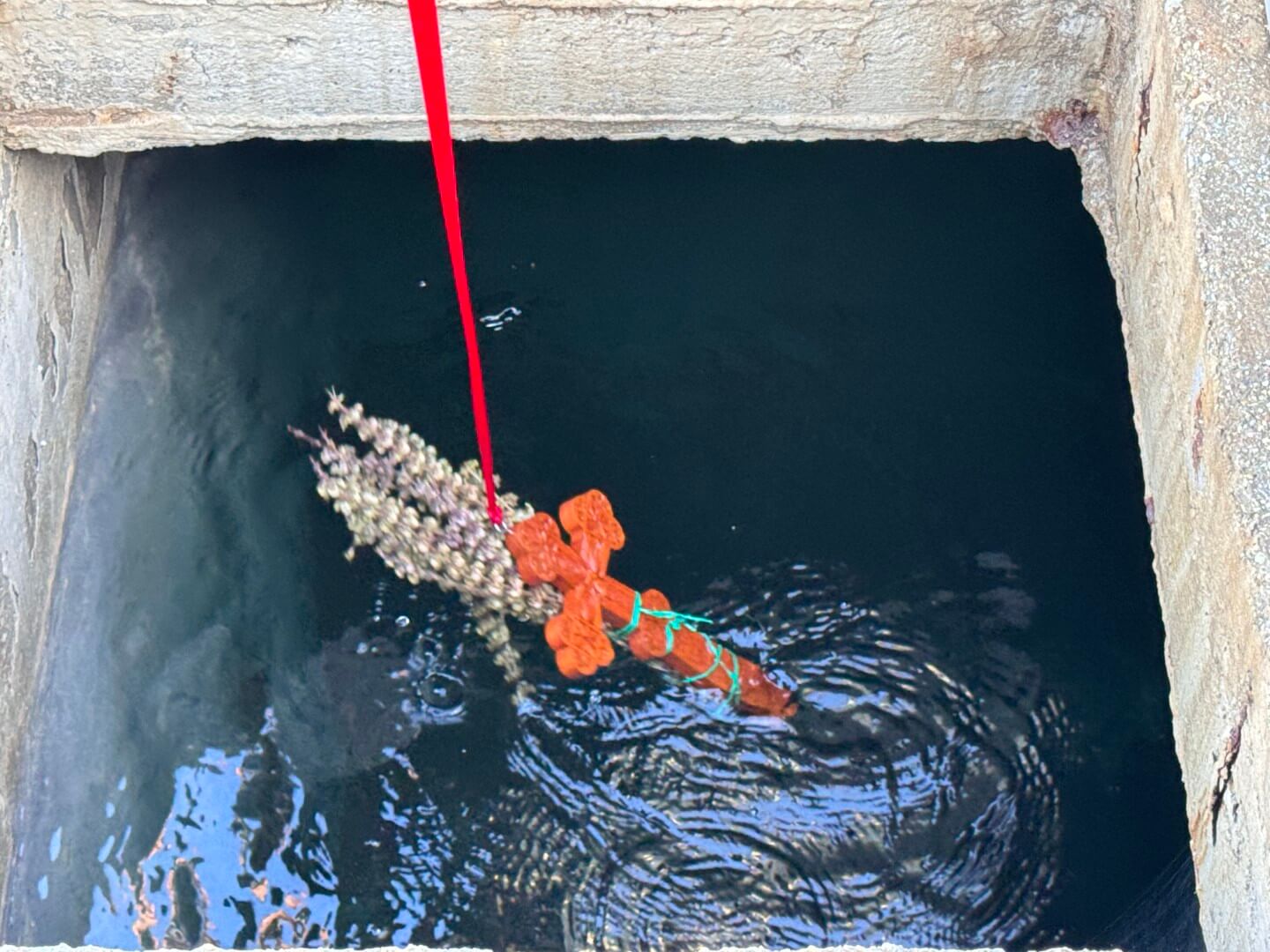 Στη συνέχεια, κατηφόρισαν με τα αυτοκίνητα όλοι οι Πατέρες και προσκυνητές της Μονής στο φράγμα του παλαιού Σπαρμού για την κατάδυση του Τιμίου Σταυρού. Τον Σταυρό ανέσυρε από τα ύδατα ο νεαρός Χρυσοβαλάντης από την Καλλιθέα Ελασσώνας, και έλαβε ως ευλογία μια εικόνα και έναν επιστήθιο σταυρό.